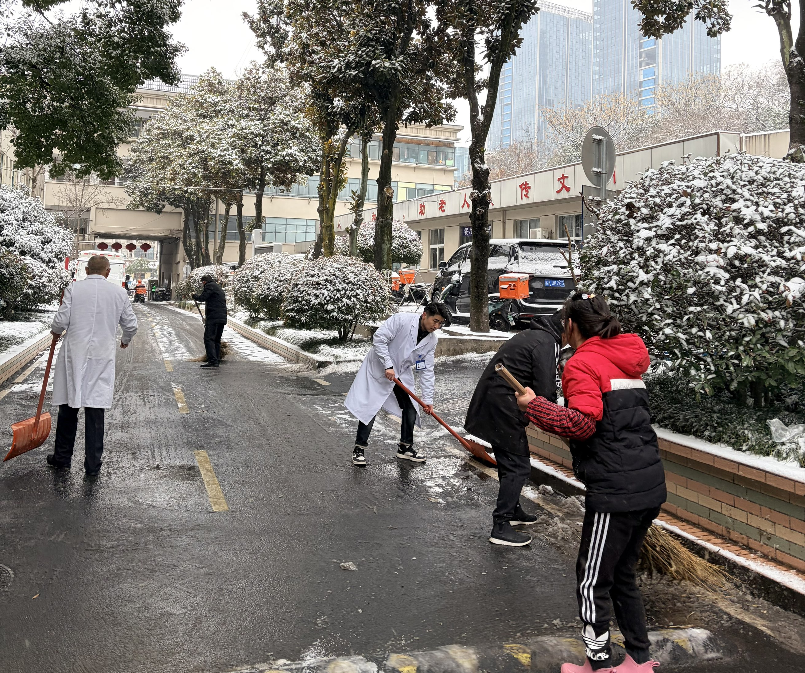 雪后清晨,为老人扫出一条“安心路”。